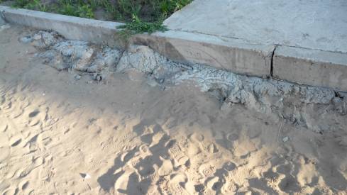 Здраствуйте,скажите пожалуйста как можно играть детям на дет.площадках когда там бетон открытый.Дыры различные.Это одна из многих фото которые у меня есть.Качели тоже в бетоне,все открыты.На одной из площадок огромная дыра ,провалилось.Детям играть нельзя.Я уже молчу что позади домов открыты подвалы куда могут упасть дети.Нельзя ли хотябы где площадки закрыть их чем то.Все это происходит в посёлке "Цветочный".А остальные площадки так и не сделаны.