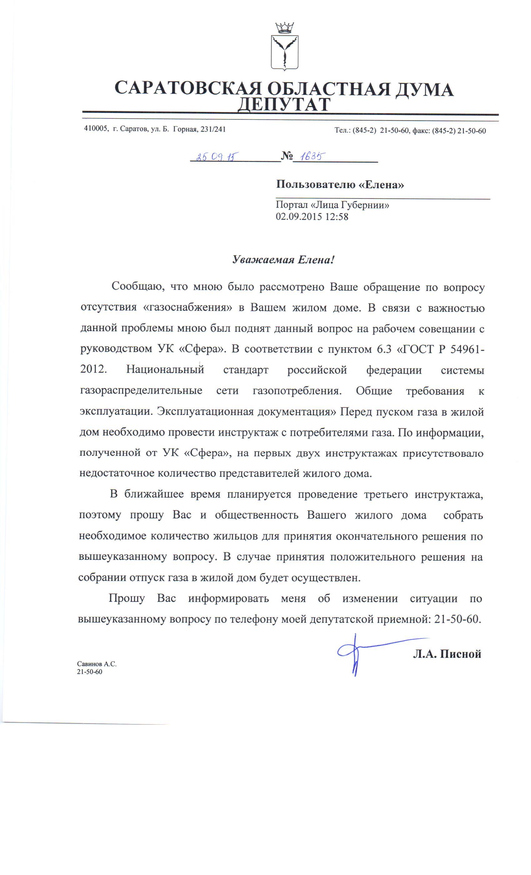 Уважаемая Елена, по мусорным контейнерам, честно Вам сказать, благодарю за напоминание, что-то никто из тех предприятий, кто отвечает за проектирование, не обратил внимание. Обязательно дам указание заместителю по подготовке производства Андрею Еланскому, чтобы он разобрался с проектировщиками. Если нет, то будем решать через администрацию, дайте мне, пожалуйста, месяц. Что касается состояния улицы Муленкова, боюсь, что каких-то кардинальных изменений в этом году не будет. Предварительно была договорённость с администрацией Саратова, с моим коллегой Алексеем Березовским, что улица Муленкова будет поставлена в план работ по строительству дорог города на 2015 год, как это было сделано в своё время с улицей Исаева. Но по ряду причин, прежде всего, из-за дефицита средств, это решение не состоялось. Поэтому давайте с Вами договоримся таким образом — как только начнётся слякоть, обязательно обратитесь к нам, и я думаю, что или я своими усилиями смогу где-то что-то подсыпать, или мы это сделаем совместно с коллегами из «СарТехстроя».