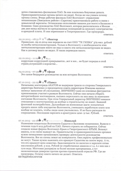 Почему то удалены все ссылки во Взгляде о которых указывалось в письме мостоотряда на имя губернатора. Сохранились скриншоты.