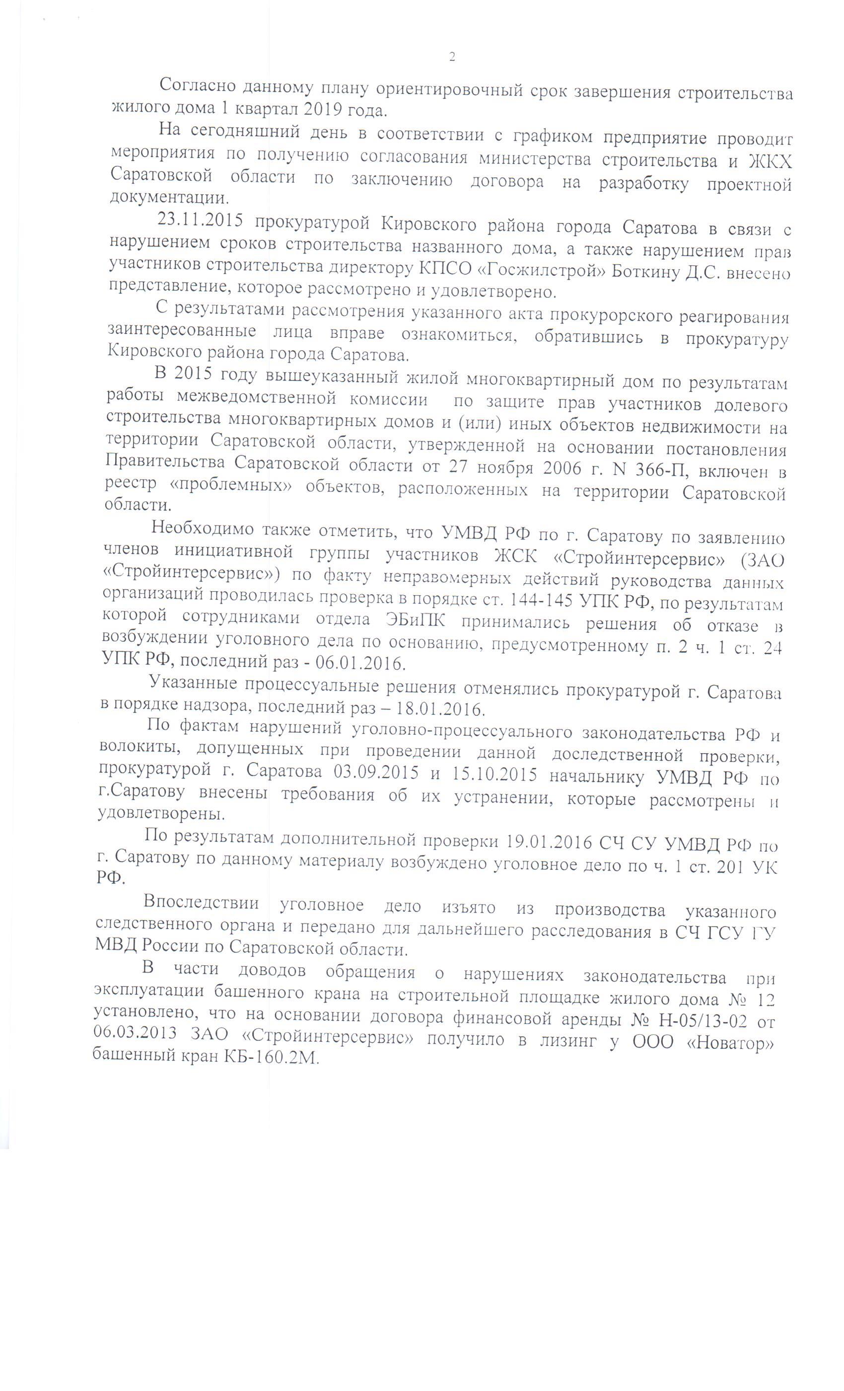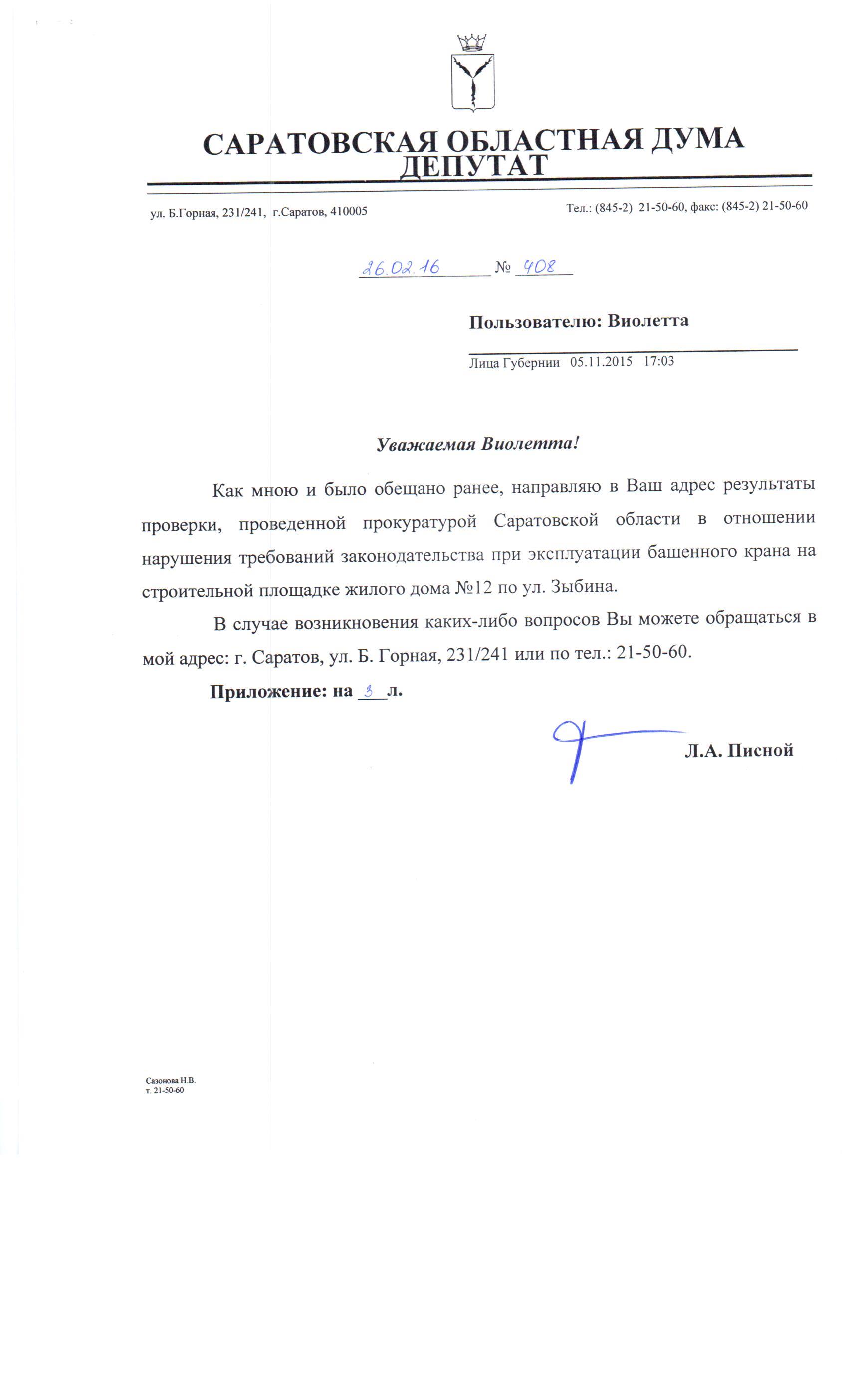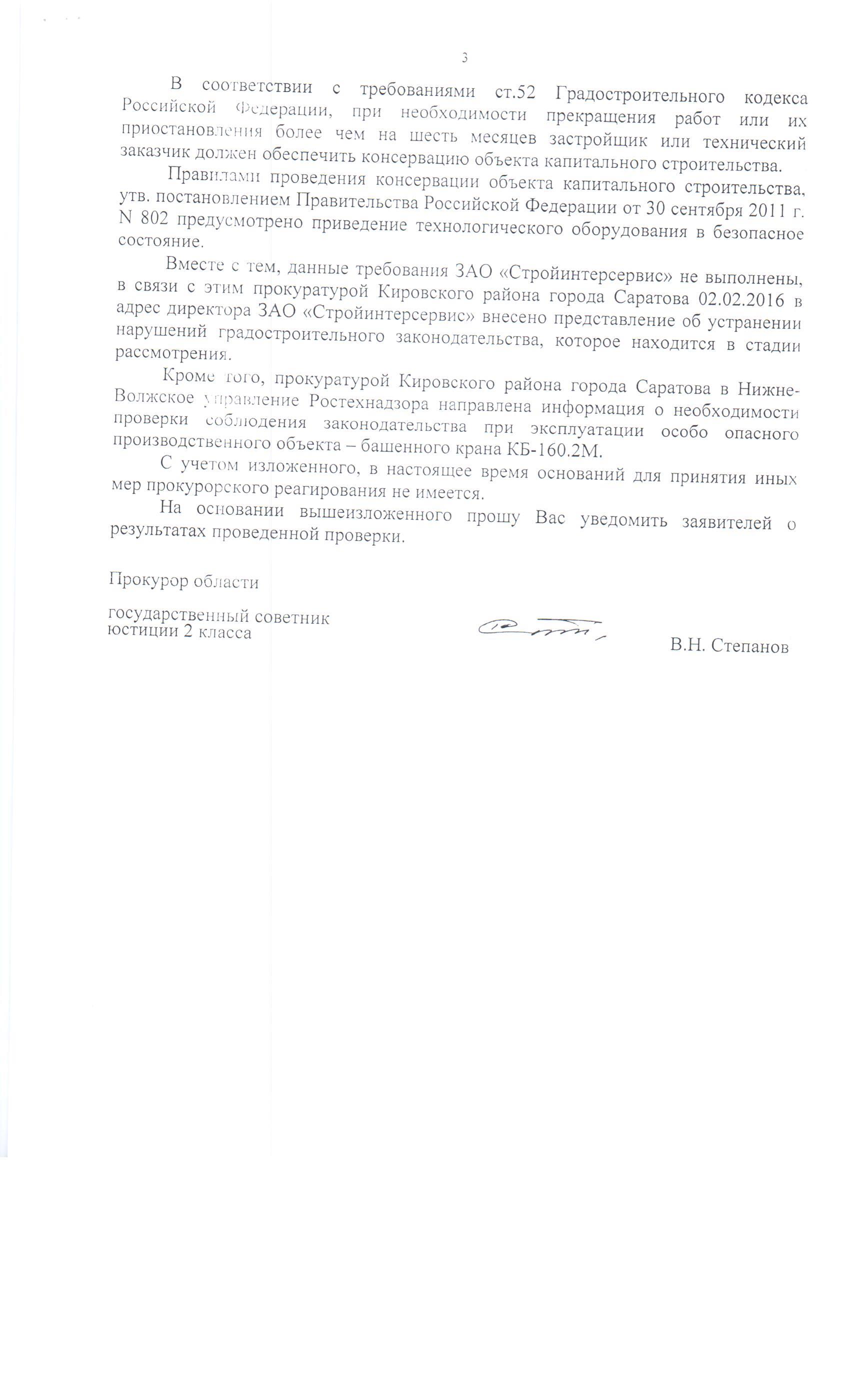 Леонид Александрович,обращаюсь к Вам с просьбой о проведении проверки башенного крана,который находиться на заброшенной стройке по адресу Батавина,дом -?.Кран стоит напротив жилого дома по адресу Мысникова 8 и Мысникова 3,стройка заброшена уже очень давно,3 года,как не ведутся работы,тех.работы на кране я думаю не производит,очень страшно за свою безопасность.