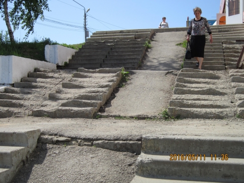 Уважаемый Валерий Николаевич! Уже неоднократно обращались в администрацию Волжского района по поводу лестницы около дома по Усть-Курдюмской 7а. По этой лестнице в темное время суток и в гололёд просто опасно передвигаться. А воз и ныне там. Очень просим посодействовать в решении проблемы замены обрушившихся ступеней и установки перил для безопасности передвижения жителей.