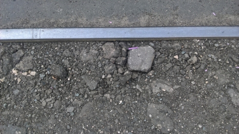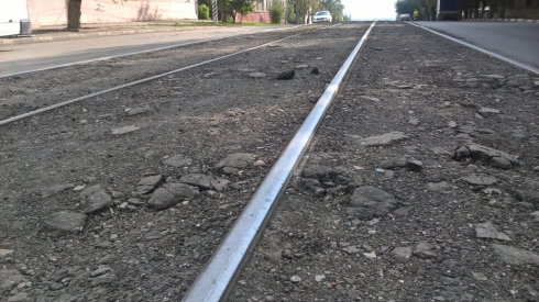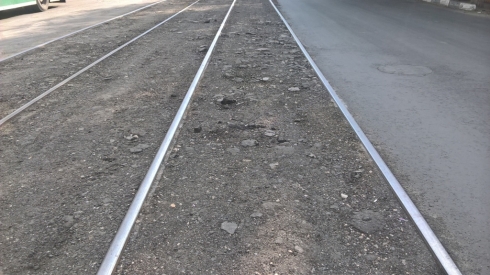 2. Трамвайная линия. Раньше, асфальта там не было вовсе, а теперь его накидали так, будто там проходили танковые учения (см. фото). Смею надеяться, что еще есть возможность проконтролировать недочеты ремонта на этой стороне и скорректировать работы на другой, если планируют делать в том же духе.