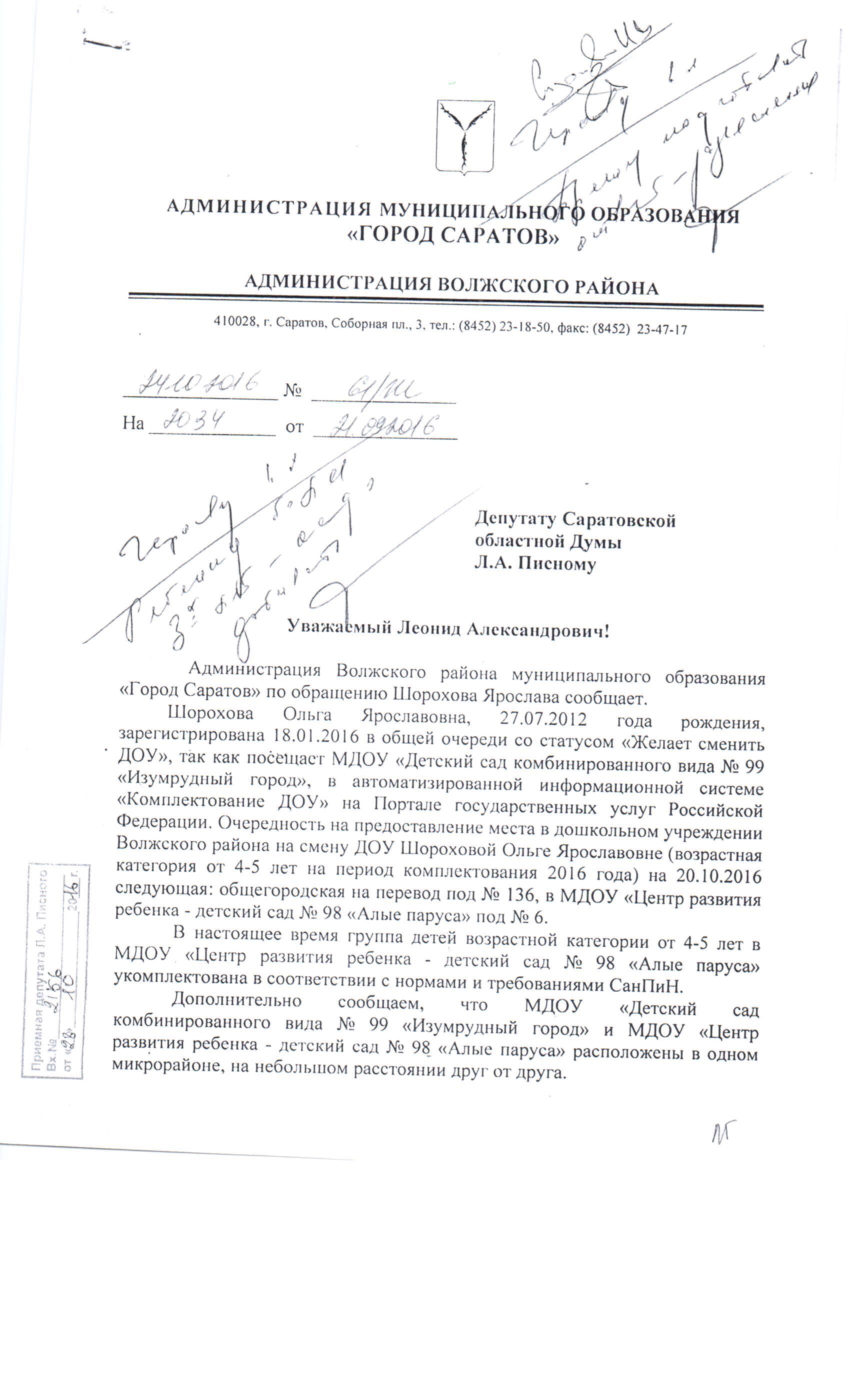 На транспорте туда не доедешь , а дороги такие, что даже на машине приходиться ехать в объезд.Мы написали заявление на перевод в "Алые паруса". НА сегодняшний день по очереди она шестая.До конца формирования групп осталось несколько дней.Помогите перевести дочку в садик возле дома.Примите поздравления с днем рождения от нашей семьи.С ув.Шорохов Ярослав.