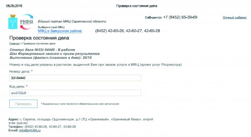 Уважаемый Сергей Петрович!Отдел УФМС в Октябрьском районе города Саратова совершенно перестал работать. 19.08.16 в МФЦ Заводского района мною были сданы документы на получении паспорта в связи со сменой фамилии.На расписке о принятии документов стоит дата выдачи 1.09.2016г, но по сей день паспорт мне так и не выдали.Несколько приемных дней я трачу время стоя в очереди в окно №1 и выслушивая очередную порцию хамства в свой адрес и выкрики "что я рано пришла". Напоминаю, что срок предоставлении государственной услуги по обмену паспорта 10 дней, а на сайте МФЦ по запросу можно увидеть, что прошло 20 дней(прикладываю фото с сайта МФЦ)!В очереди в УФМС много людей, которым не выдают паспорт уже месяц!!! Из-за волокиты Октябрьского УФМС я не могу воспользоваться никакими социальными услугами, банковскими картами и теряю возможность голосовать на выборах! Мои права, как гражданина, нарушены!Это настоящий бардак и волокита!Получается сдаешь документы в МФЦ, они их передают в УФМС, и все, дальше все те же очереди, хамство...Прошу скорее разобраться в данной ситуации и выдать мой паспорт!