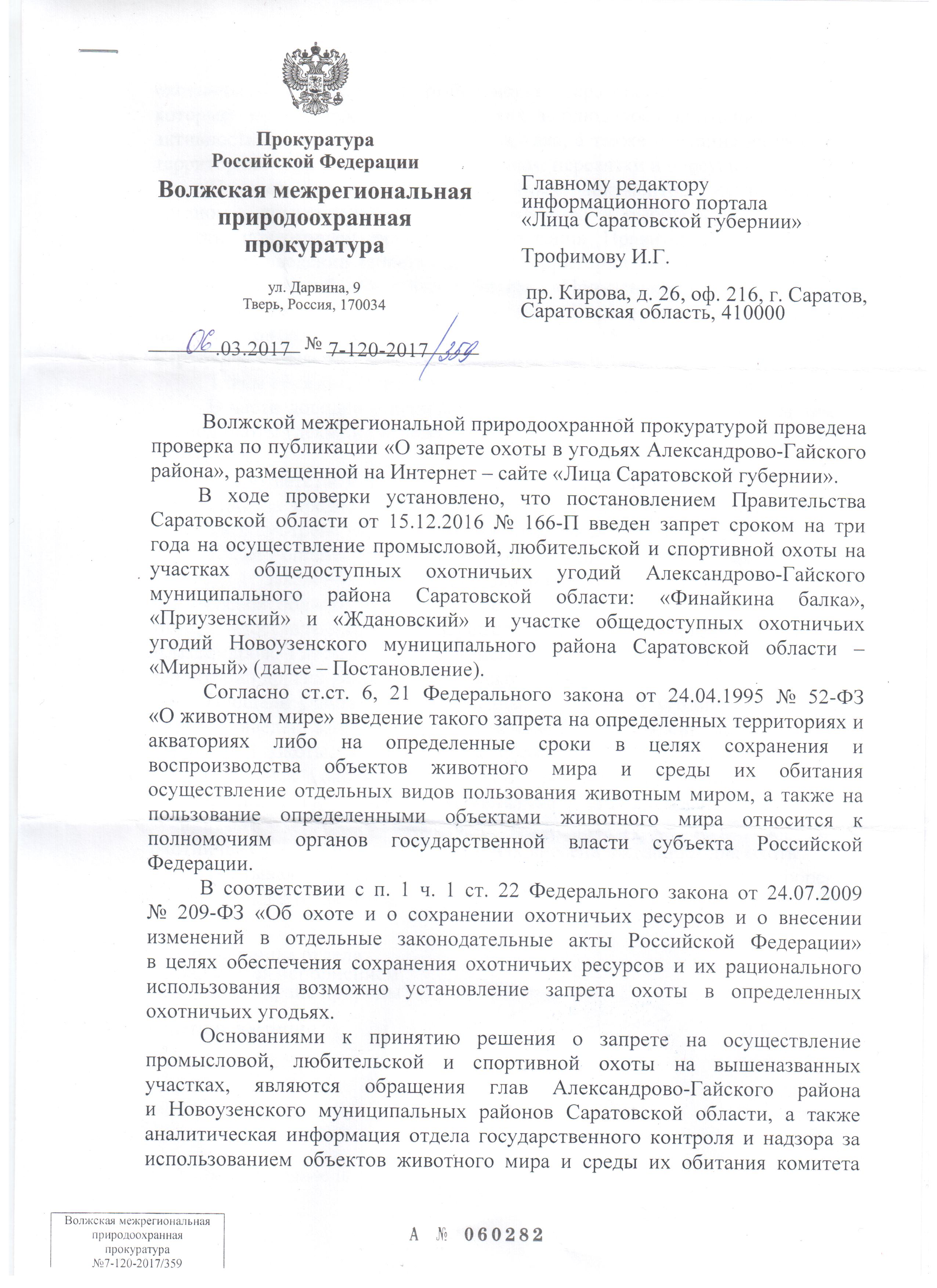 Уважаемый Сергей Владимирович! С большой просьбой к Вам обращаются любители спортивной охоты с просьбой разобраться о постановлении правительства Саратовской области об отмене промысловой,любительской и спортивной охоты в угодьях Александровогайского района , а именно Финайкина балка, Приузенский , Ждановский и Мирный.
