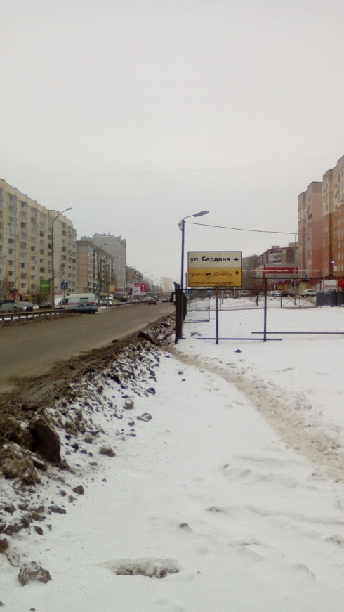 Этой дорогой ходят дети и родители в школы и садики с момента постройки домов бардина и уфимцева. Просьба проверить и вернуть людям возможность безопасно ходить в указанной зоне.