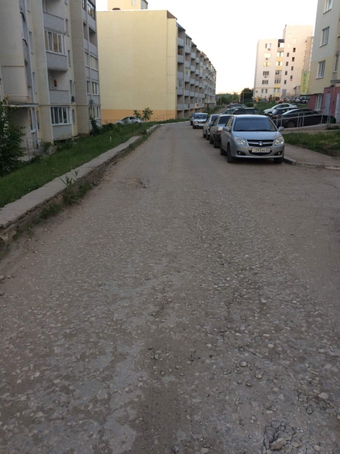 У нас отсутствуют, как таковые, парковочные места и люди вынуждены оставлять автомобили во дворе рядом с тротуаром, из-за этого и так не широкая дорога становится ещё меньше, во дворе образуются пробки. Просим Вас посодействовать в решении данного вопроса. Спасибо. (Фото прилагаются).