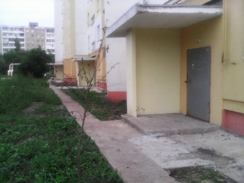 2. Нет наклонного склона с тротуара на проезжую часть, но даже если она и будет, у нас машины паркуют возле подъездов из которых не зайти не выйти ни с коляской ни с ходунками.