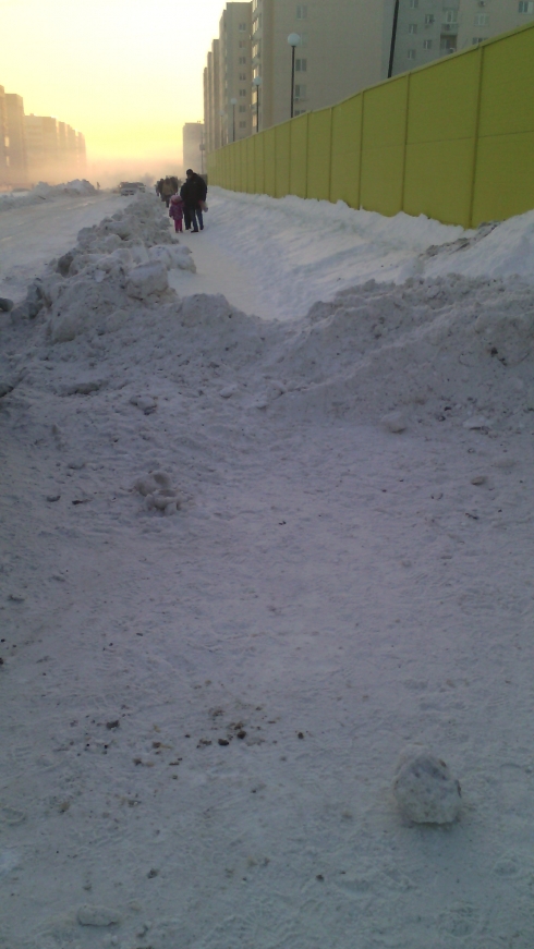 Сегодня всю ночь в 9 микрорайоне п. Солнечный 2 кипела работа. Чистили улицу Лисина от ул. Панченко до ул. Топольчанской. Единственный участок, который чистился здесь регулярно – это тротуар возле детского сада, за что огромное спасибо дворнику данного учреждения. Всё остальное не чистилось никогда: ни пешеходам не пройти, ни автомобилям не проехать. И вот, наконец ночью улицу почистили. Казалось бы, ура, чудо! Проехать по ней теперь можно. А вот пройти – нет. Всю наледь с проезжей части тупо вывалили на тротуар. Просто и легко. Валерий Васильевич, там детский сад. Родители с детьми идут по проезжей части, с санками и детьми под мышками перепрыгивают через ледяные глыбы.
