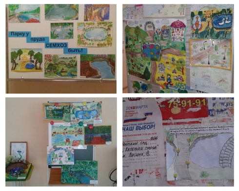 Дети мечтают о парке, свои мечты они выражают в рисунках, это рисунки от школы Солярис, 123, 215 детских садов.