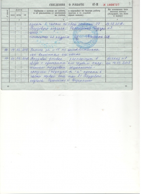 Сергей Владимирович прошу разорбраться в моем случае, по поводу несправедливой записи в трудовой книжке.