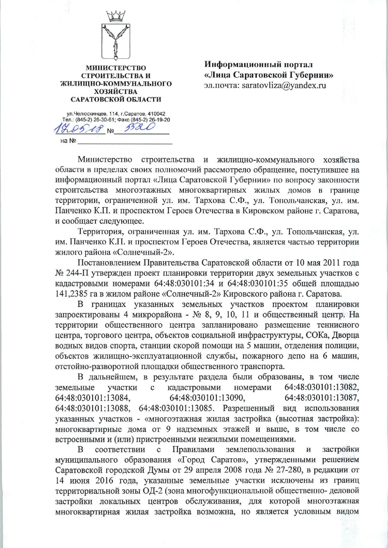 - Комиссия по публичным слушаниям одобрила внесение этих изменений, хотя они противоречили Генеральному плану, утвержденному решением Саратовской городской Думы № 25-240 от 28.02.2008 с изменениями от 11.10.2012 и проекту планировки, утвержденному постановлением Правительства Саратовской облоасти от 10.05.2011 г № 244-п с изменениями от 05.09.2014 г № 511-п. У комиссии были все основания для отклонения предложенных изменений, но этого не произошло!