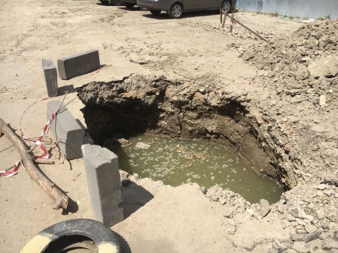 Рядом находятся панельные многоквартирные дома, у детей каникулы, могут гуляя по не осторожности провалиться в этот котлован с водой. Кроме того, яма находиться на дороге идущей к производственным помещениям, и теперь, пока асфальт не восстановлен, возможность проезда грузовых автомобилей - ОТСУТСТВУЕТ!