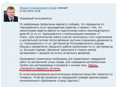 К сожалению, энергетики не успели завершить работы на ул. Чернышевского в ранее обозначенный срок (28 июня).
