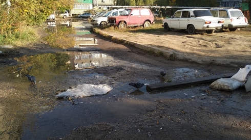 В поселке Жасминный затопило улицу. В Ленинском районе Саратова около дома №14 по улице Строителей образовалась коммунальная река. Горожанам приходится искать дорогу к подъезду или идти по лужам. Чтобы хоть как-то уменьшить поток воды, жильцы дома положили мешки и палки. Однако это не решило проблему, а вода потекла в сторону детского сада и поликлиники по отремонтированной по проекту "Дворы Саратова" дороге. По словам местных жителей, это не первый подобный случай. По улице Строителей очень часто текут такие "реки". Весной и осенью во дворе все время грязь, а зимой образуется бугристая наледь. Вода течет третью неделю с ул Майской, дом 8. "Озеро" у дома 14 стоит уже несколько дней, а коммунальные службы бездействуют.