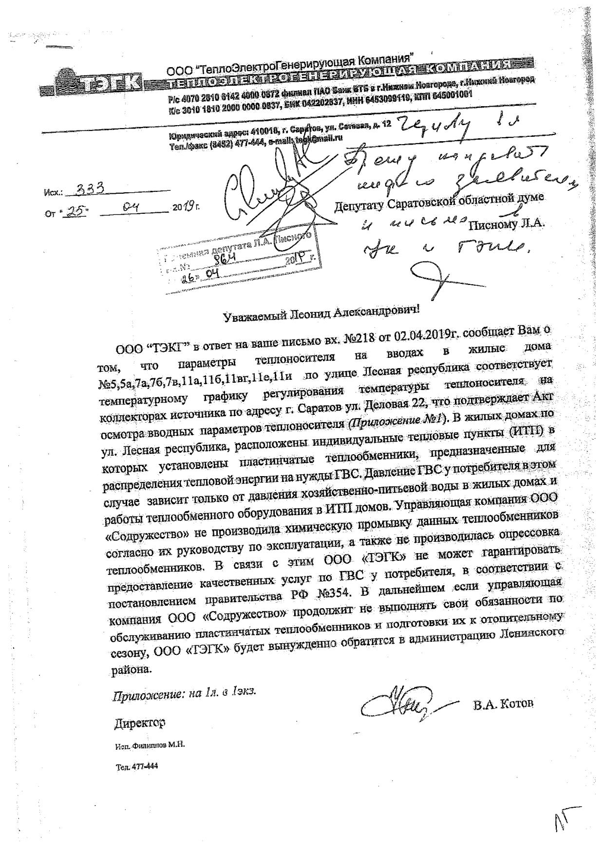 Добрый день Леонид Александрович! Просим оказать содействие в решении проблемы с напором горячей воды во всей лесной республики. Почему именно сейчас возникли проблемы с напором и именно до верхних этажей не доходит вода вообще! Как нам купать детей! Почему УК аргументирует решение проблемы в установке насосов, для нас-жильцов это дополнительные затраты. А также актуальна проблема люков со всех сторон ямы становятся все больше. Огромная просьба откликнуться Вас.