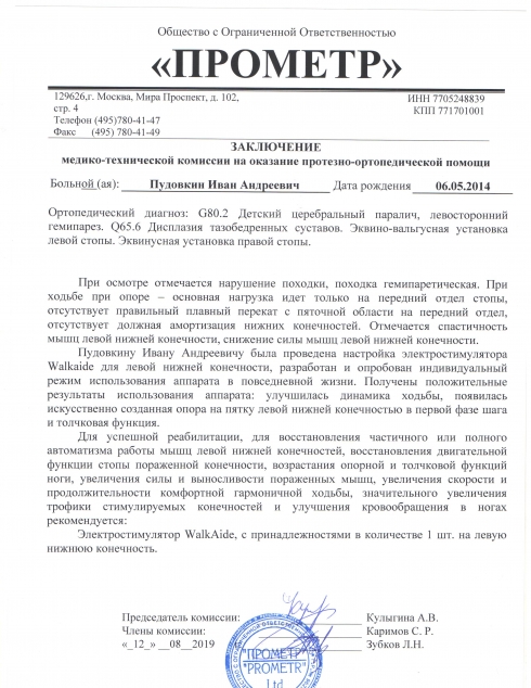 Заключение медико-технической комиссии по Ивану в приложении. (можем предоставить счет на аппарат, декларацию и сертификат ) ..Это ссылка на видео где Иван без аппарата и сним https://ok.ru/video/1666203781748 мой тел.89042444084 адрес электронной почты vfrfkkfy@mail.ru Будем рады любой помощи