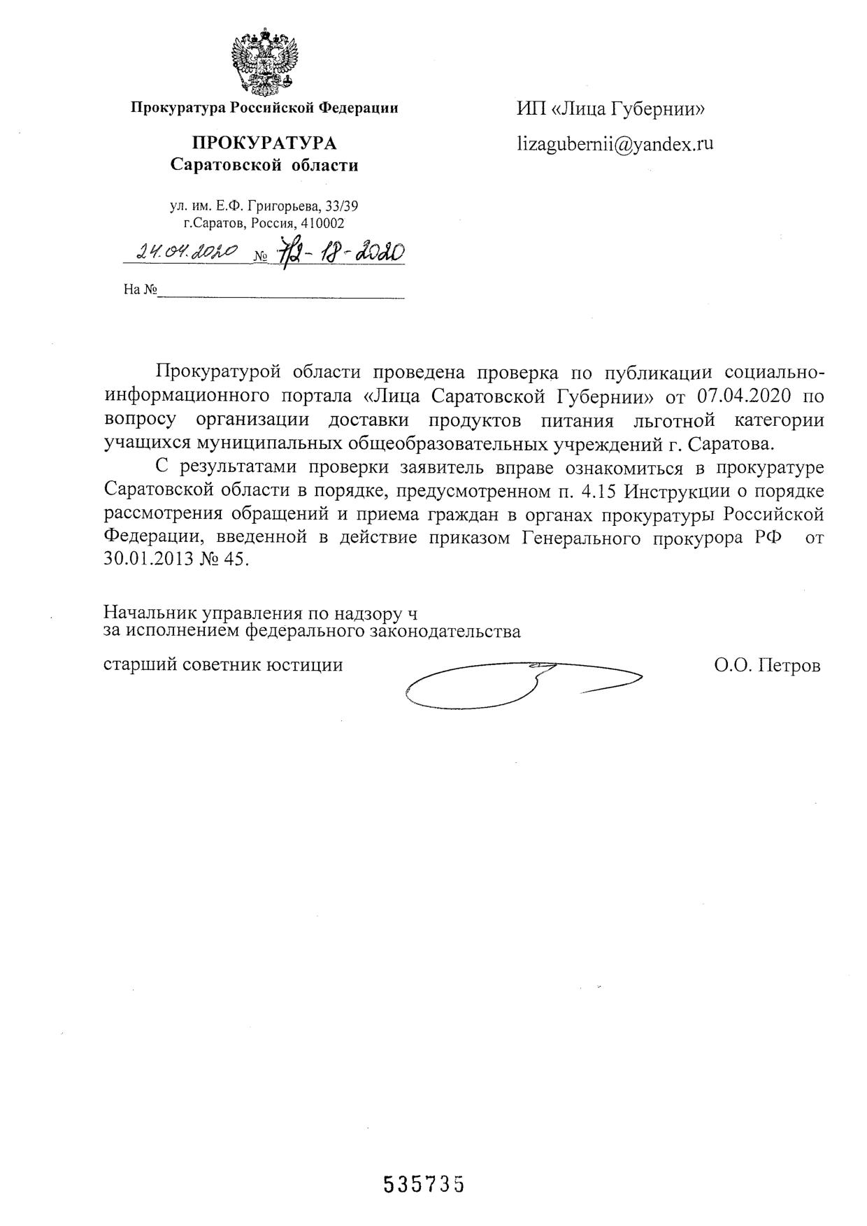 Прошу Вас принять превентивные меры в отношении главы Саратвоа Исаева М.А. и председателя городского комитета по образованию Ревуцкой Л.А. о недопустимости доставки на дом "пайков" малоимущим семьям!