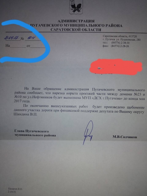 Уважаемый Валерий Васильевич ! Прошу Вас оказать содействие в решении вопроса. Посёлок Нефтянников находится на окраине города Пугачева, поэтому наверное у чиновников местной администрации "не доходят до нас руки".