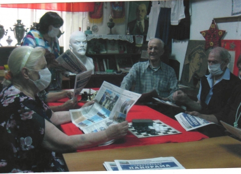 Завершилась встреча чаепитием со сладостями, всякими вкусностями за столом в ветеранской гостиной. Баянист сидел поодаль и играл молодежи наши любимые песни. Расселись на расстоянии друг от друга, как и положено сейчас, угощались и продолжали разговаривать (хоть в масках) о жизни, об учёбе, о мечтах, о родителях и бабушках.