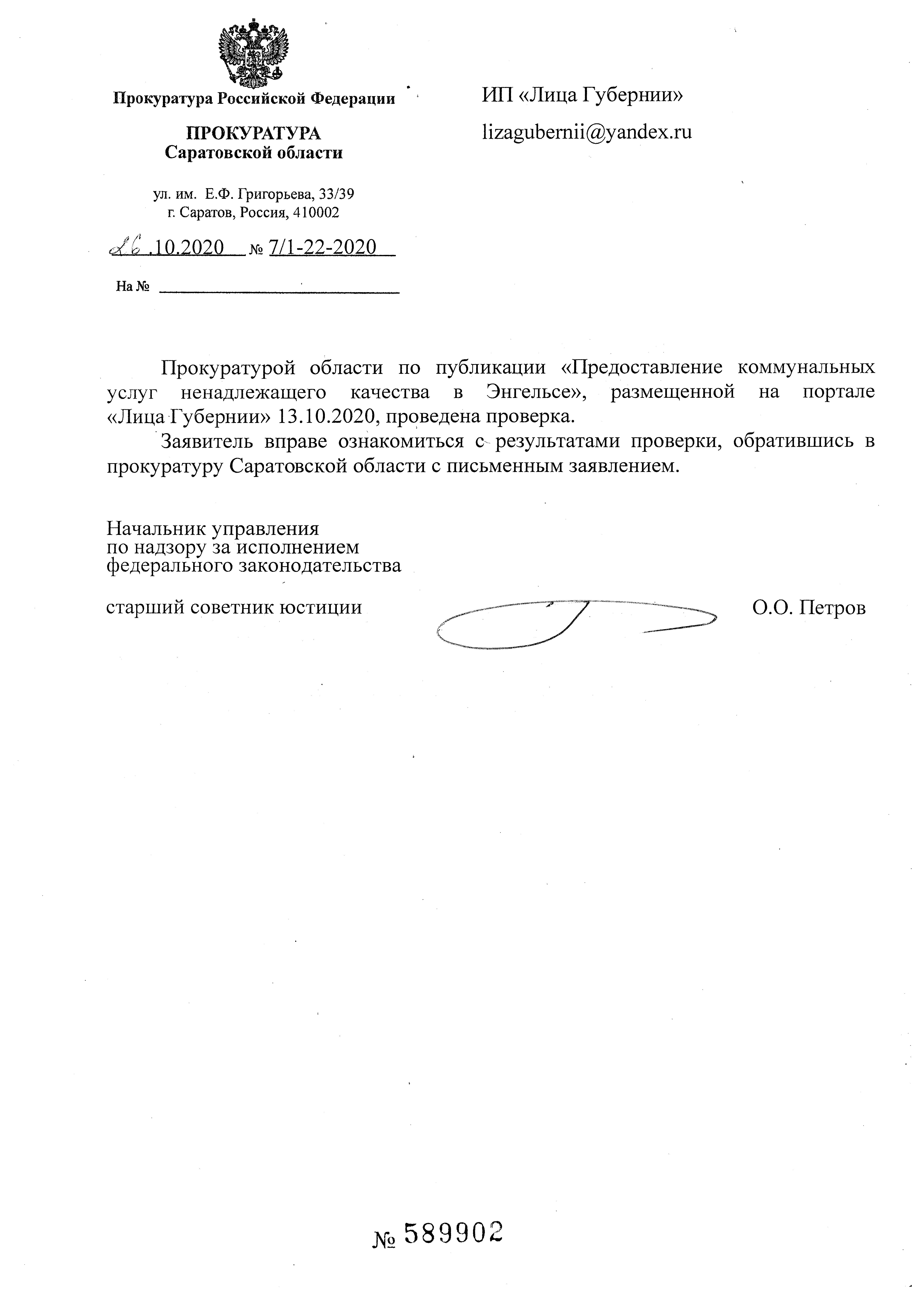 Управляющая компания «Управление домами» из Энгельса, которой предложили в соответствии с жилищным законодательством зафиксировать факт неоказания услуг в соответствии с Постановлением Правительства РФ от 06.05.2011 N 354 (ред. от 29.06.2020) "О предоставлении коммунальных услуг собственникам и пользователям помещений в многоквартирных домах и жилых домов" (вместе с "Правилами предоставления коммунальных услуг...X. Порядок установления факта предоставления коммунальных услуг ненадлежащего качества и (или) с перерывами, превышающими установленную продолжительность присылает вместо своего сотрудника вот такие отписки, по сути посылая на пару букв и цифр вместо работы в соответствии с жилищным законодательством, тем самым игнорируя вышеуказанное постановление правительства и продолжает нарушать права жильцов.