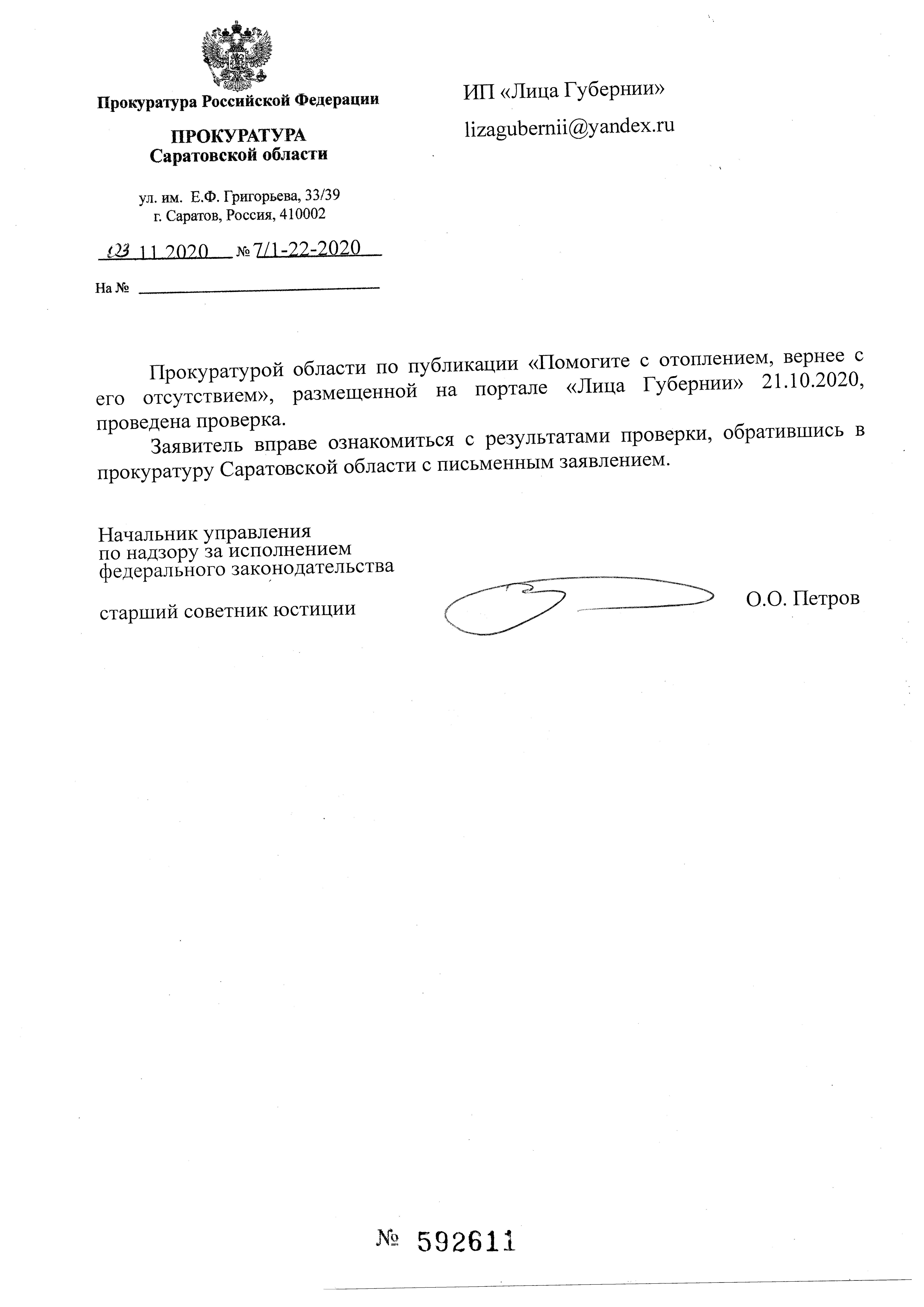 Сергей Владимирович, обращаются к Вам жители дома № 25 по ул. 1-ая Прокатная, Ленинского района г. Саратова, с огромной просьбой разобраться в парадоксальной ситуации с отоплением в квартирах № 3, 7, 11, 15, 19, 23, 27, 31, 35. Вот уже, начиная с 8 октября, а именно с начала отопительного сезона, в указанных квартирах нет отопления от слова СОВСЕМ(!). Ежедневные обращения жителей этих квартир остаются без ответа. Дежурные диспетчеры, к которым мы обращаемся по телефону: 444-200 отвечают, что заявка принята, и слесарь будет отправлен по указанному адресу. Что было обещано и сегодня в телефонном разговре с дежурным диспетчером Пашуцкой. Уже 20 октября, на улице резко похолодало, а батареи в наших квартирах остаются на настоящий момент холодными. Мы очень боимся, что ситуация не разрешится в лучшую сторону, как это бывало во все годы существования этого злочастного дома, и до декабря (в лучшем случае) мы останемся со своей проблемой один на один, а значит, будем замерзать!!! Наши обращения к губернатору Радаеву В. В., Депутат Государственной Думы Володину В. В. не принесли никаких результатов. Что уж говорить о наших обращениях в АНО \\\"Сфера\\\" и по телефону 36-34-20, и к начальнику ЖЭУ Матвеевой Э.О. - это всё бесполезно! Все разводят руками и отвечают, что НЕ знают, как нам помочь! Говорят, обращайтесь в администрацию Ленинского района. А администрация Ленинского района советует нам обращаться по телефону 444200. В общем, замкнутый круг! И не было бы нам так печально, если бы не наступающая вдруг зима! Мёрзнут старики, дети, жители начали заболевать. Это же нарушение всех прав человека! Пожалуйста, как мы уже неоднократно писали, помогите нам разобраться в этой ситуации, не останьтесь равнодушным. Приезжайте в любую указанную квартиру, и Вы убедитесь, что отопления у нас нет!