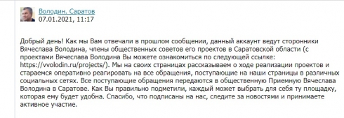 Повторно акцентирую внимание отвечающих от лица Володин.Саратов на портале "Лица губернии" на том, что некорректно писать "его проекты". Инициируемые им и его проекты- разные понятия.