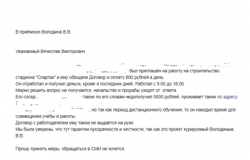 А вот как работала Приёмная ОП Володина В.В. по невыплате зарплаты лето 2020 на стадионе "Спартак".