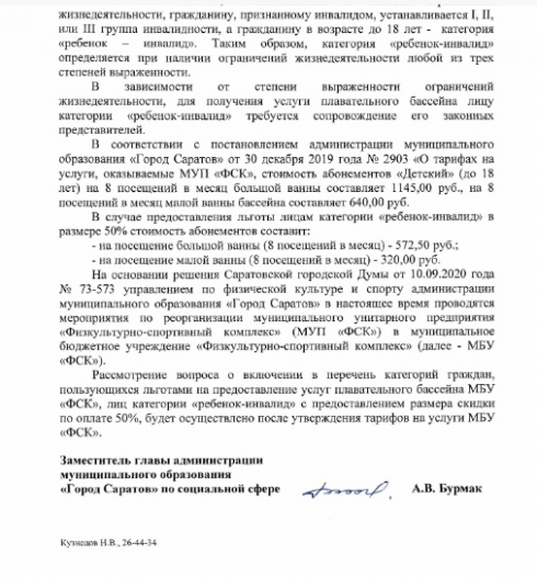 Прошу разъяснить, как получить скидку 50% ребёнку-инвалиду, на сайте МБУ нет информации и специалисты МБУ ФСК ничего об этом не знают, как ответили при общении по телефону.