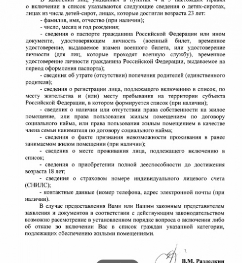 Спасибо Роману Викторовичу за исчерпывающую информацию для детей-сирот и лиц из их числа по постановке детей-сирот на учёт в минстрое и ЖКХ в качестве нуждающихся в жилье