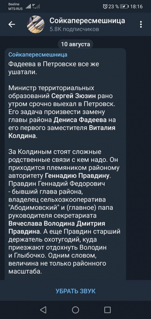 Жители города Петровска и Петровского района в большом возмущении, что наш глава города подал в отставку. Всем понятно, что это было давление на Фадеева.Д.В. , может быть работы проводились медленно , но он их выполнял! Он единственный глава за все время , который что то делал. Он принимал людей как в администрации так и онлайн и приходил на помощь населению. А вот новый избранник на место главы Колдин.В. на просьбу инвалида спилить дерево стоящее на муниципальной территории , ответил ему-" что бы тот пилил своими силами."