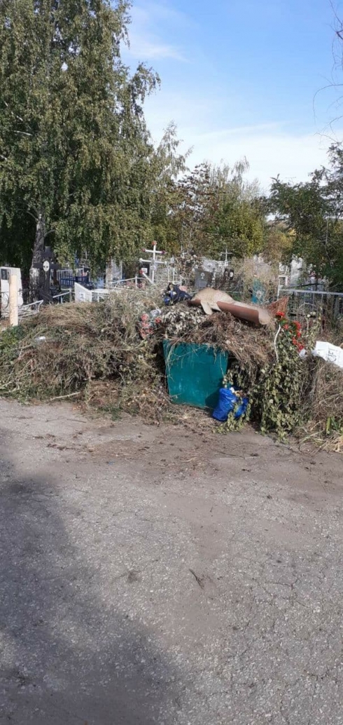 Добрый день. МКУ "Администрация кладбищ" приняты меры по ликвидации несанкционированного складирования мусора на территории кладбища.
