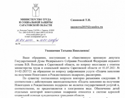 Более года министерство труда и социальной защиты игнорирует просьбы о внесении изменений в приказ 737 в части обеспечения цифровизации услуги подачи заявлений на получение новогодних подарков.