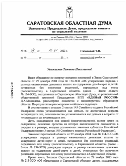 Данный вопрос прорабатывается мной в связи оказанием бесплатной юридической помощи по обращению жительницы г. Энгельса Саратовской области на портале "Лица губернии" от 30 августа 2021 года http://lizagubernii.ru/vopros/59983/opeka-i-posobiya.html.