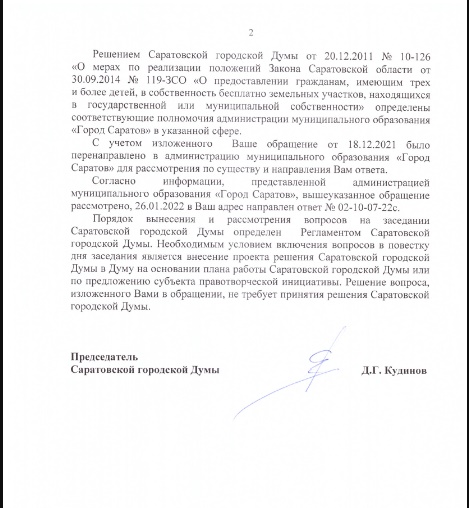 Обращаю Ваше внимание на то, что Кудинов Д.Г отвечает официально что НЕ ТРЕБУЕТСЯ вынесения вопроса о ликвидации очереди в 4444(данные сентябрь 2021) многодетных семей на землю в повестку заседаний городской Думы.