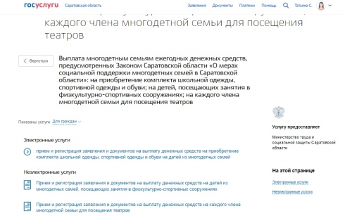 Прием и регистрация заявления и документов на выплату денежных средств на каждого члена многодетной семьи для посещения театров (gosuslugi.ru)