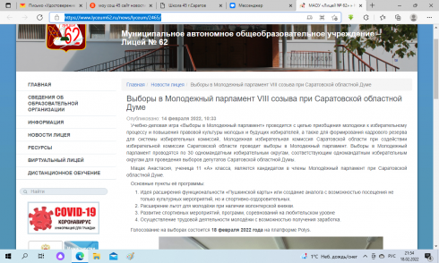 Жалоба на нарушения кандидатом сроков агитационного периода с приложением скриншотов отправлена в ТИК 18 февраля 2022 года, где чётко видно время, когда производилась съёмка экрана и когда были зафиксированы нарушения.Ночью после письма в ТИК материалы были убраны