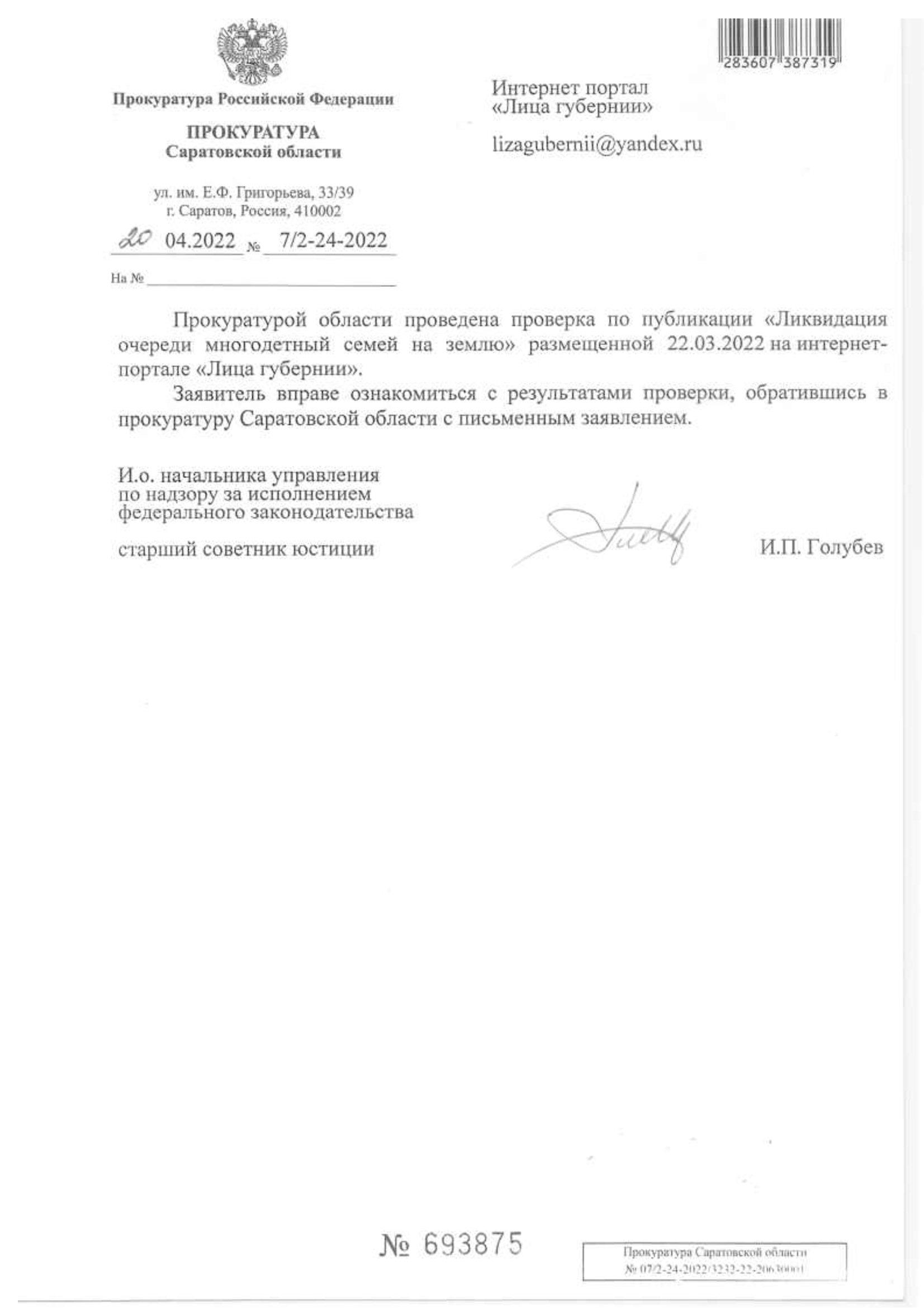Прокуратура области что предпринимает в связи с тем, что 27 семей потеряли право на получение земельного участка? Причины потери права не связаны ли с наличием очереди и бездействием мэрии по вопросу ликвидации очереди многодетных семей на землю? Скольким семьям угрожает лишение права на земельный участок из-за того, что не успела подойти очередь и дети выросли?