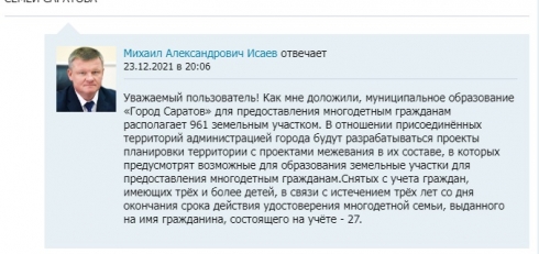 Пожалуйста, учтите наше мнение при разработке НПА, а также Вы не ответили на обращение от 22 марта 2022 года Ликвидация очереди многодетных семей на землю :проверка прокуратуры области :: сайт «Лица Саратовской губернии» (lizagubernii.ru)