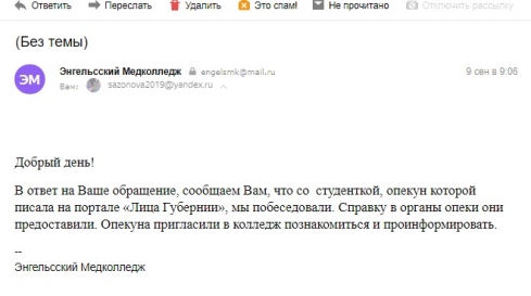 Ранее обращались к Вам через портал "Лица", сайт ГД, ОП в Саратове по вопросу необходимости внесения изменений в законодательство РФ для обеспечения поступления вне конкурса в колледжи детей -сирот и детей, оставшихся без попечения родителей, так как столкнулись с проблемой, озвученной попечителем из г.Энгельса.http://lizagubernii.ru/vopros/59983/opeka-i-posobiya.html.