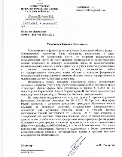Обращались к Вам в 2021 году через портал и интернет-приёмную по доступности услуги для детей-сирот. Госуслуги для постановки на очередь детей-сирот в министерстве строительства и ЖКХ :: сайт «Лица Саратовской губернии» (lizagubernii.ru)