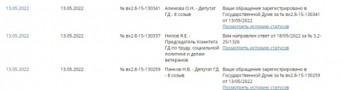 Обращение было 13 мая к Вам и Нилову Я.Е. и Панкову Н.В.