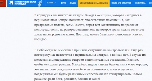 «Главное, чтобы женщины рожали»: саратовский минздрав прокомментировал жалобы на ужасающие условия в роддомах - KP.Ru