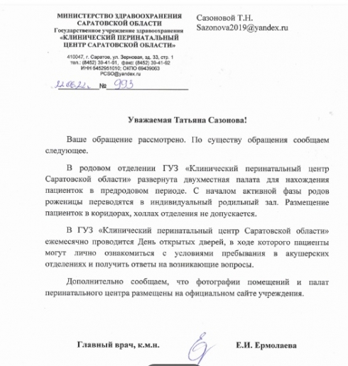 Судя по ответам главврача КПЦ Ермолаевой Е.И и вице-губернатора Пивоварова И.И. в ХОЛЛАХ ЛЕЖАТЬ НЕ ДОЛЖНЫ РОЖЕНИЦЫ И РОДИЛЬНИЦЫ.