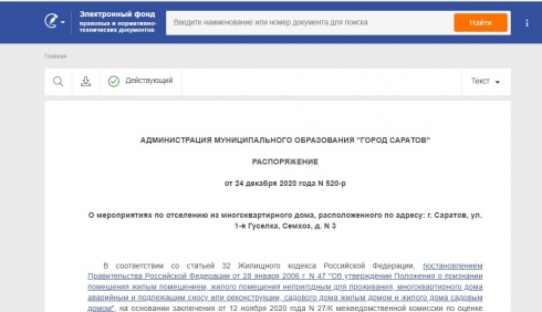 О мероприятиях по отселению из многоквартирного дома, расположенного по адресу: г. Саратов, ул. 1-я Гуселка, Семхоз, д. N 3 от 24 декабря 2020 - docs.cntd.ru