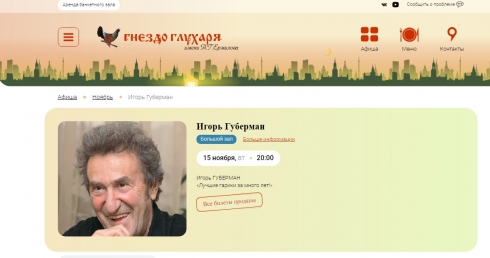 Игорь Губерман, концерт пройдет 15 ноября в 20:00, купить билеты можно на сайте. Бард-клуб "Гнездо глухаря" (gnezdogluharya.ru)