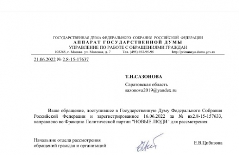 Прошу проверить правомочность действий Е.В. Цибизовой, ОБРАЩЕНИЕ К ВАМ О НЕОБХОДИМОСТИ ЗАПРЕТА ВЪЕЗДА Губерману И.М. в РФ сотрудником ГД ПЕРЕДАНО ВО ФРАКЦИЮ "НОВЫЕ ЛЮДИ". Скриншот личного кабинета и ответа Е.В. Цибизовой прилагаю.