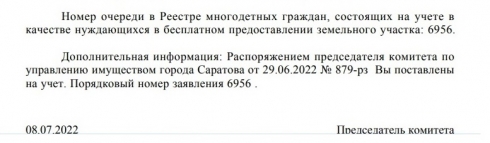 Мной 09.07.была запрошена услуга на Портале Госуслуг в части предоставления данных по учёту - часть услуги Постановка на учет в качестве лица, имеющего право на предоставление земельного участка в собственность бесплатно (gosuslugi.ru)