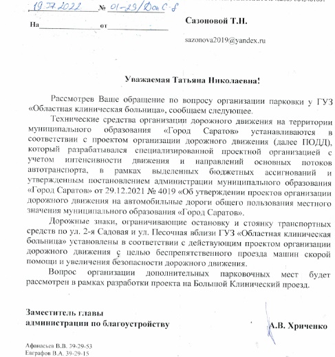 Спасибо за сегодняшний ответ по вопросу организации парковки у ОКБ.