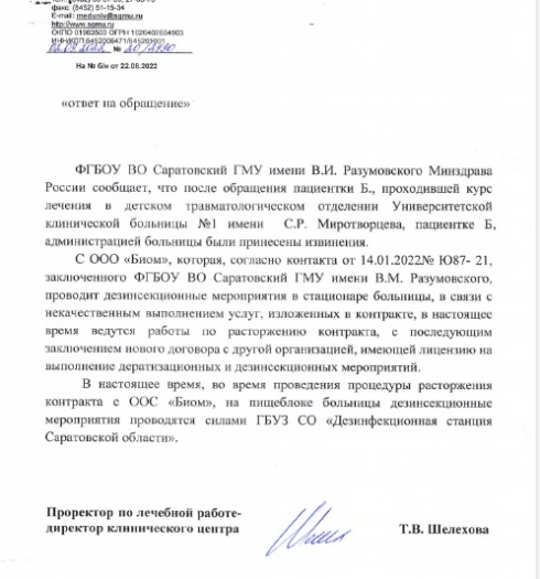 Просим Вас ознакомиться с ответом клиники СГМУ по посту в Саратовонлайнhttps://vk.com/wall-87292497_7391571Комментарий СГМУ в СМИ Версия , возможно,противоречит коммментарию, присланному на личную почту руководством больницы.«Все пожимают плечами и говорят: мы тут ни при чем»: в саратовской больнице никак не могут избавиться от насекомых — ИА «Версия-Саратов» (nversia.ru).Спасибо заранее за внимание к теме прав маленьких пациентов!Спасибо порталу "Лица" за публикацию обращений по важным для населения темам!